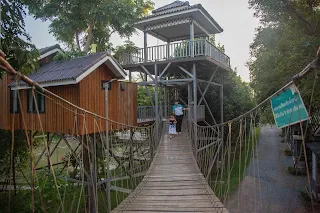 เราพักบ้านต้นไม้ใหญ่ ห้องเบอร์ 22 ห้องกว้างขวางดี มีระเบียงเห็นวิวนา มีอ่างอาบน้ำด้วย เด็กๆเล่นกันเพลินเลย อุปกรณ์ในห้องน้ำมี่ครบทั้งสบู่ ยาสระผม มีตู้เย็นให้น้ำเปล่าและน้ำอัดลมด้วย แถมมีครัวเล็กๆ ชานชาม ไมโครเวฟให้ใช้ด้วย