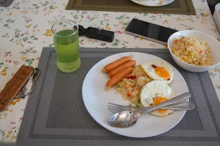 อาหารเช้า เป็นบุฟเฟต์ ทานที่ร้านคาเฟ่นี้แหละค่ะ ให้บริการ 7.00-10.00 น. แต่บ้านเราไปตอน 9 โมง ข้าวผัดและข้าวต้มเกือบหมดแล้ว ไม่มีเติมแล้ว แต่มีไข่ดาวและไส้กรอกเพิ่มให้ ข้าวรสชาติดีนะคะ เสียดายมีน้อยไปหน่อย มีอีกบ้านนึงมาทีหลังเรา คือไม่มีข้าวใดๆแล้ว เก็บเกือบหมดแล้วค่ะ ถ้าใครพักพัก แนะนำให้ไปทานข้าวแต่เช้านะคะ FB : Patio boutique house