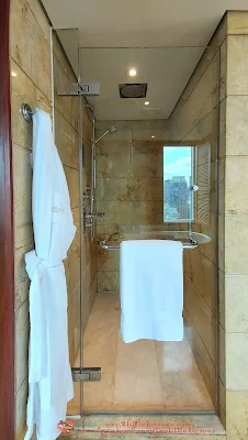 ห้องของเราอยู่ชั้น 23 เป็นห้องหัวมุม ห้อง 2319 มีพื้นที่ขนาด 53 ตารางเมตร เห็นวิวด้านทางด่วนเพลินจิตด้วย วิวเมืองกว้าง ๆ ดูสบายตาดี หน้าห้องมีการติดสติ๊กเกอร์ Hilton Clean Stay เพื่อให้มั่นใจในความสะอาดและไม่มีใครเข้าห้องก่อนเราแน่นอน