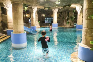 ที่นี่มีสระว่ายน้ำให้บริการด้วย เป็นสระน้ำอุ่น อย่าลืมเตรียมชุดว่ายน้ำไปด้วยนะคะ เดินจากตึกที่พักไปประมาณนึง ถามทางจากพนักงานได้เลยค่ะ